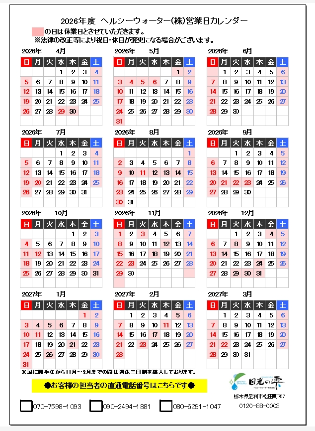 お客様のお住まいのお届けルート曜日(お届けルート曜日はお客様とご相談の上決めさせていただきます)に合わせたご希望の日にご希望の個数をお届けいたします。 日時指定はできませんが、12Lペットボトルを1,200円/本で購入できます。 |